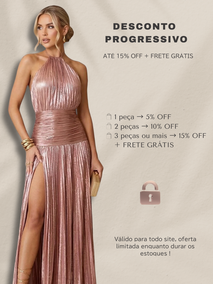 Vestido Plissado Longo Assimétrico Metalizado