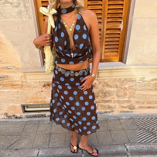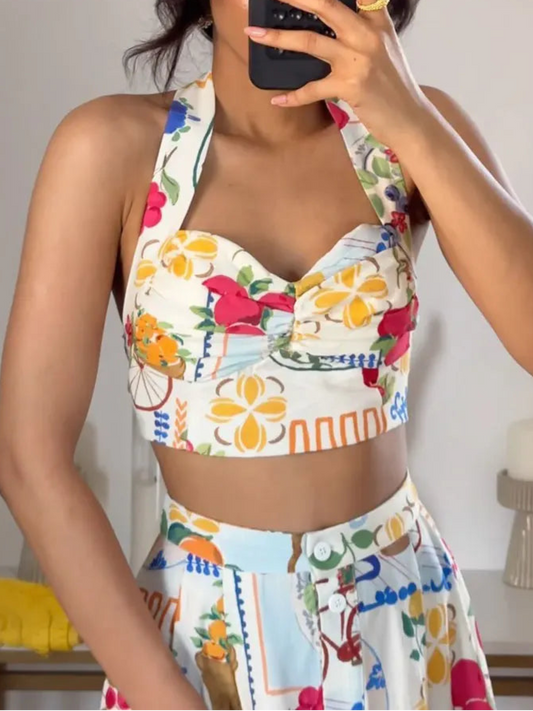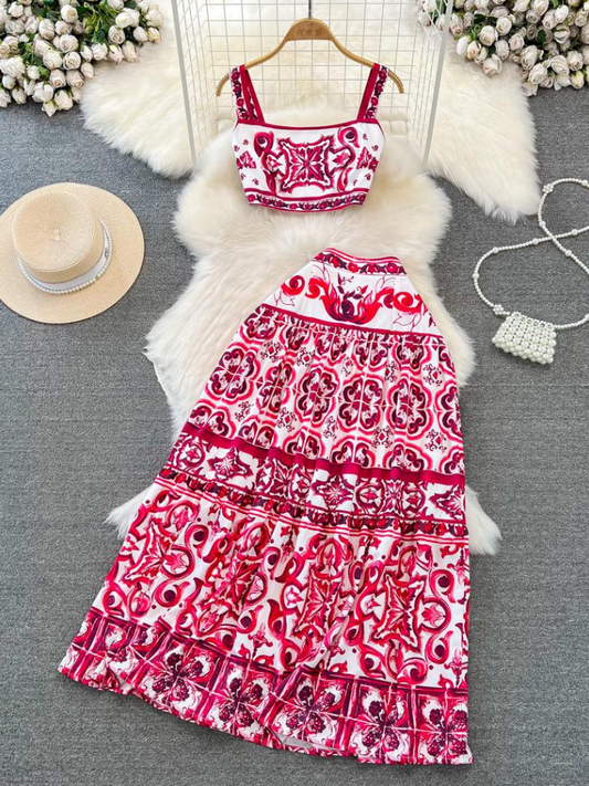 Conjunto Cropped e Saia Longa Ondas do Mar