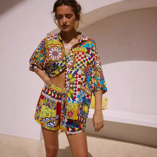 Conjunto Estampado de Limões: Camisa Nó Frontal + Short