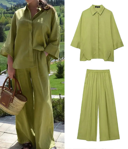 Conjunto Feminino Viana Cropped com Zíper e Calça Pantalona - Sale