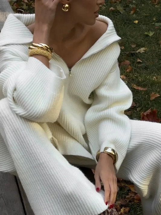 Conjunto Feminino com Calça Boca de Sino e Cropped Manga Longa