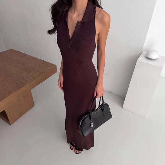 Vestido Longo Poá com Fenda e Gola Estilo Lenço