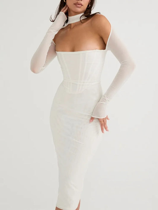 Vestido Rendado Boho Midi com Alcinhas e Tassels