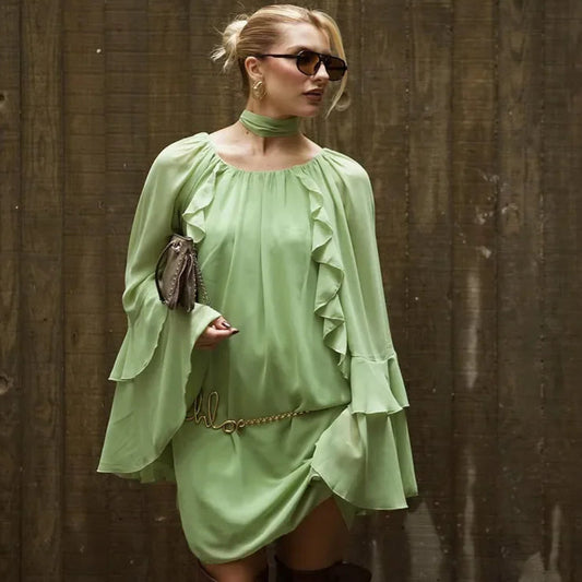 Vestido Curto Godê Babado em Camadas