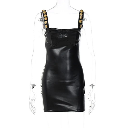 Vestido Preto com Alças de Botões Dourados