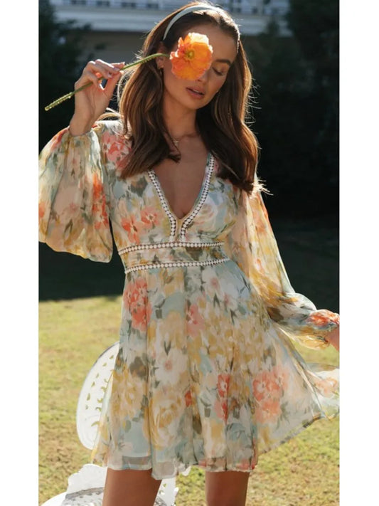 Vestido Curto Manga Longa Boho