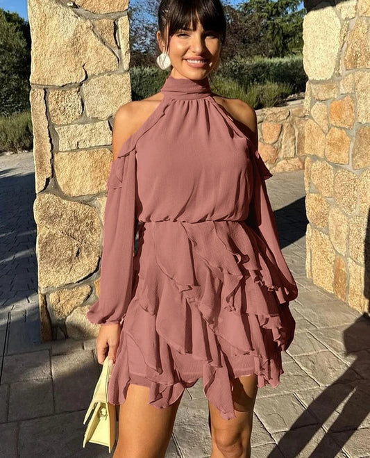 Vestido Rosé Ruffles Elegante