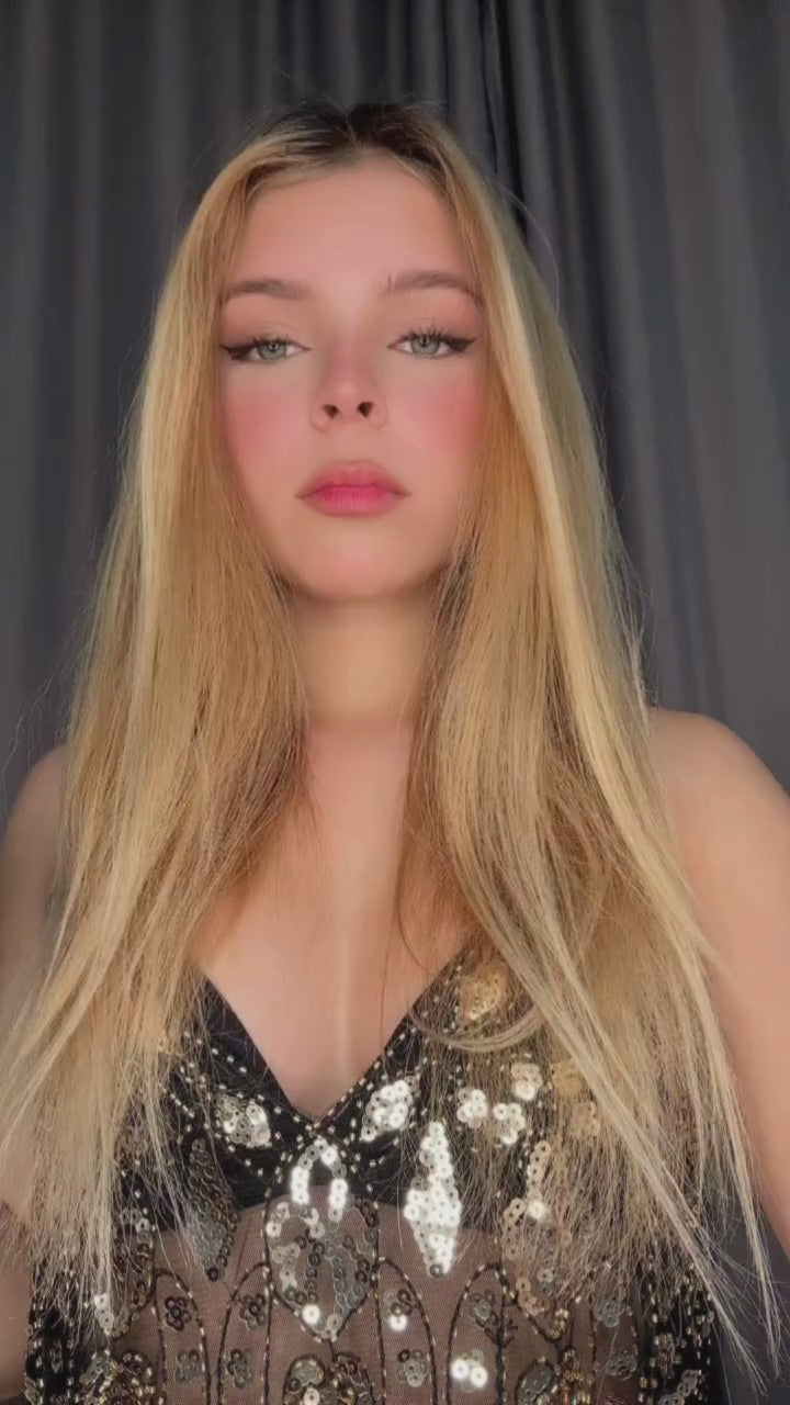 Brilhe em qualquer ocasião com o Cropped Transparente com Bordado de Paetês e Alças Finas . Essa peça ousada e glamourosa combina transparência sedutora com um trabalho artístico de bordado em paetês dourados, prateados e pretos, formando um padrão marcante que valoriza o visual com sofisticação.