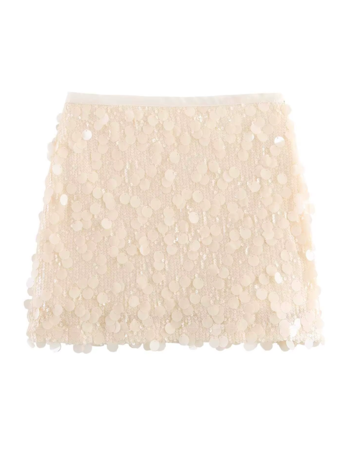 A Saia Shine é a peça perfeita para quem busca glamour e sofisticação com um toque moderno. Com aplicação de paetês em tom bege perolado, ela garante um visual radiante e estiloso para festas, eventos e produções noturnas.