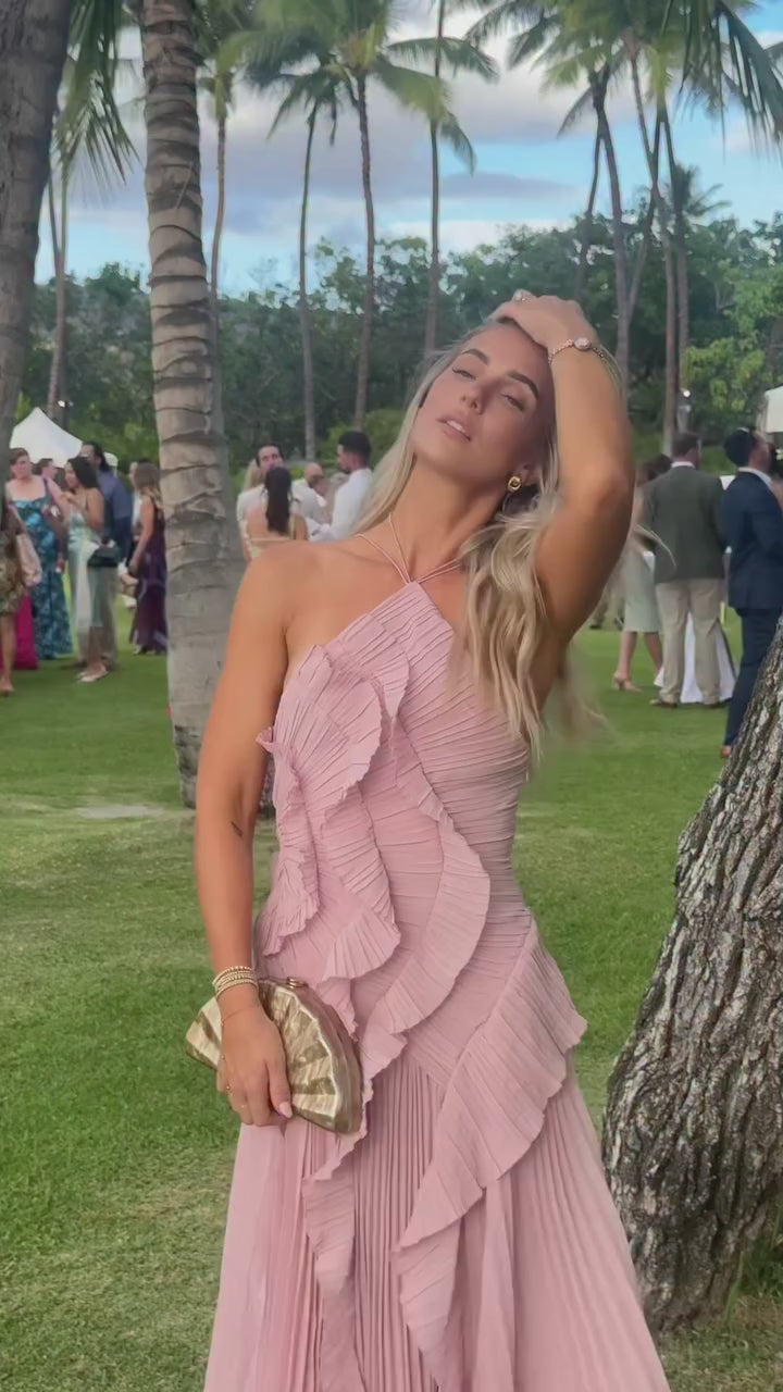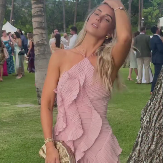 Vestido Amélie Plissado Rosa