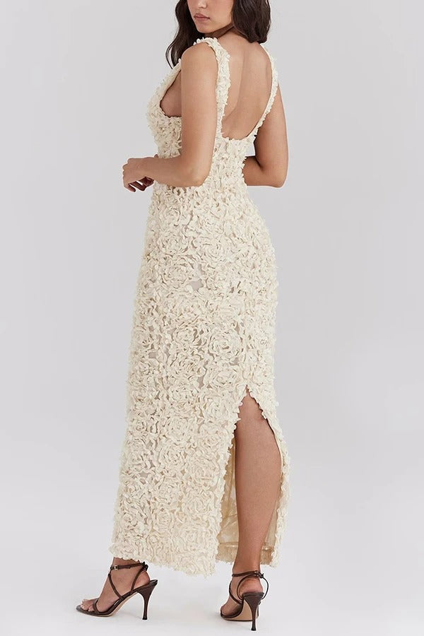 Vestido Festa Off White Flores ,você estará sempre pronto para ser o centro das atenções, exibindo um visual deslumbrante e cheio de glamour em qualquer evento noturno. Adicione este item ao seu guarda-roupa e prepare-se para brilhar como nunca!