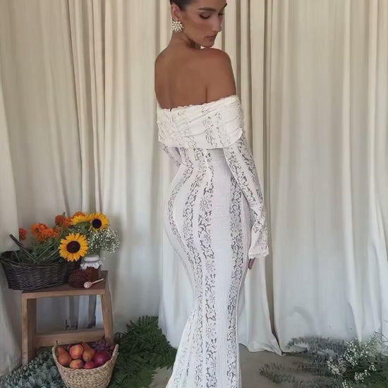 Vestido Longo de Renda Ombro a Ombro Encanto Atemporal