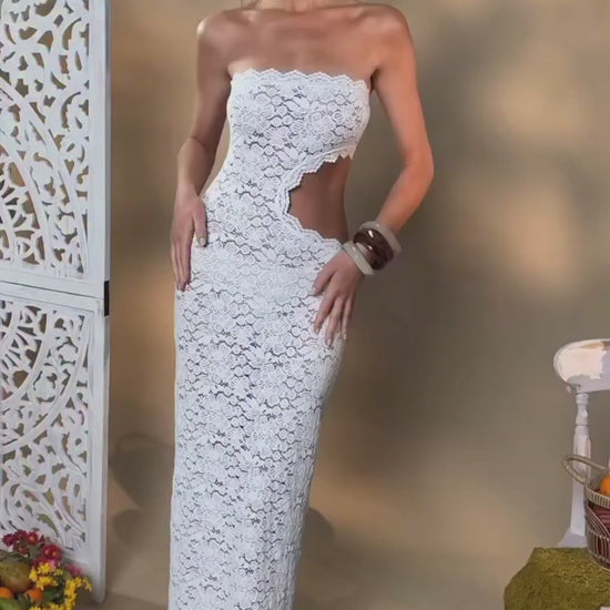 Com comprimento midi, essa peça é perfeita para momentos especiais, jantares à beira-mar ou eventos onde o branco sofisticado faz toda a diferença. O acabamento rendado traz uma estética romântica, enquanto o recorte assimétrico adiciona um toque fashionista irresistível.