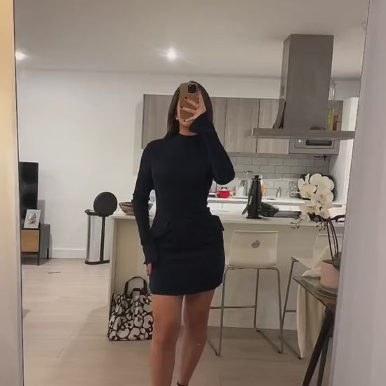 Um verdadeiro statement de estilo, o Vestido Sculpt combina uma modelagem arquitetônica impecável com um visual moderno e sofisticado. Seu corte estruturado valoriza a silhueta feminina, enquanto a gola alta e as mangas longas conferem um ar elegante e contemporâneo.